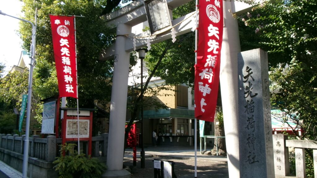寛永19(1642)年、三代将軍家光が、当地に浅草三十三間堂を建立した際、その堂の鎮守として稲荷神を祀ったのに始まると伝えられています。社殿によるとその神像が上野東叡山寛永寺の開山、慈眼大師天海大僧正の寄進であると言われております。浅草三十三間堂射術稽古場の的先に奉納されたためにその社名も矢先稲荷神社と称されました(現地案内版による)。浅草三十三間堂は1698年に「勅額火事」と呼ばれる大火で焼失しました。